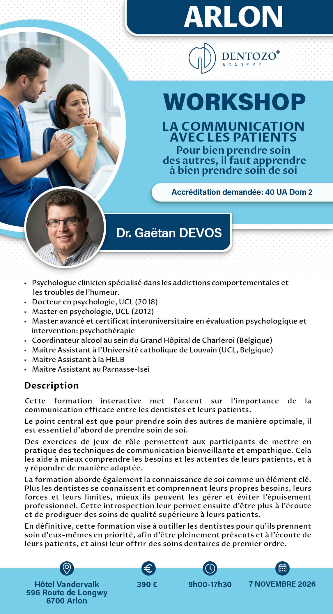 • Docteur en Science Dentaire, Gnathologie (Université Catholique de Louvain)